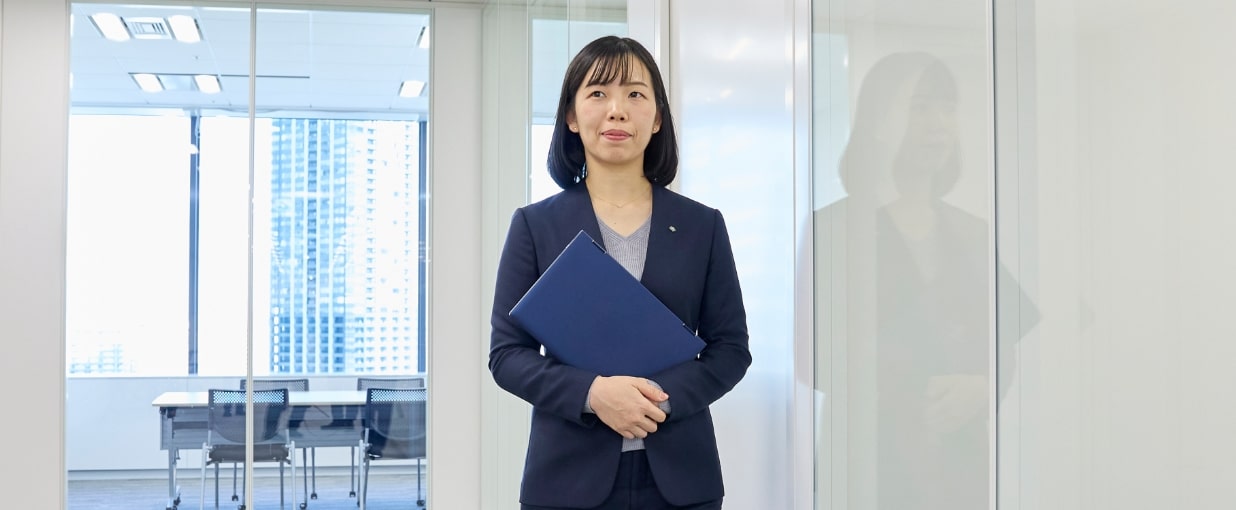 当社には育成する文化があります。入社半年でも案件を任され、対応案の検討や、関係者との協議等を担当していきます。進め方や最適解がわからないときは、上司や先輩に相談しながら進めます。私は金融やITの知識がない状態で入社しましたが、明るく前向きに取り組むことで、自然と知識や仕事の進め方が身についてきたと感じます。