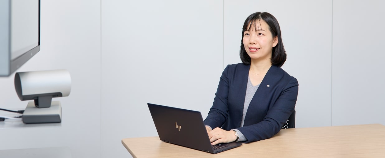 当部は、業務の企画を行う中で、業務設計やシステム化の企画まで一貫して担当します。業務を企画するためには業務理解に加え、法律やコンプライアンス・世の中の動向等高いアンテナが必要です。一方、当社には各分野の専門家がいるので、彼らから正しく情報を収集・処理し、関係者と協議する力が一番必要と思いますし、最も難しい点です。現在もトライ&エラーを繰り返しながら奮闘する毎日です。