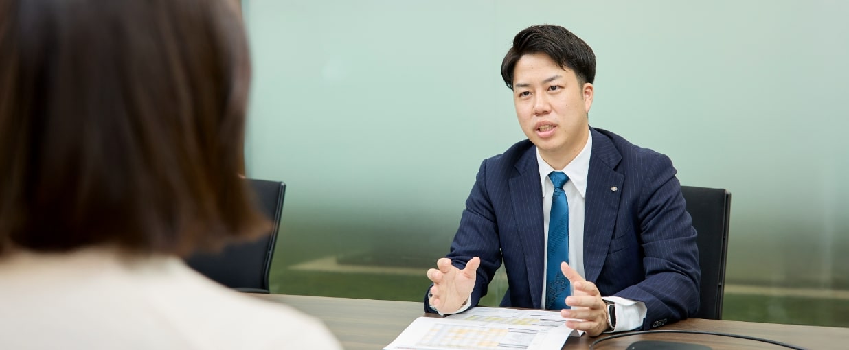 この点は入社前のイメージ通りでしたが、ギャップもありました。入社前は個人主義の殺伐とした雰囲気を想像していたのですが、実際には、明るくオープンな職場でした。いい意味で「おせっかい」な文化があり、年齢や立場に関係なく、社員同士が積極的に教え合う風土が根付いています。先輩たちは、後輩に同行して契約に至っても自分の実績にはならないのですが、労を厭いません。先輩にしてもらってきたから、自分も当たり前のこととして後輩に返す。自分が分からないことは、遠慮せず聞ける。このカルチャーは一朝一夕で根付くものではなく、先輩たちから脈々と受け継がれ、100年の歴史がつくってきたものの一つなのだと感じます。