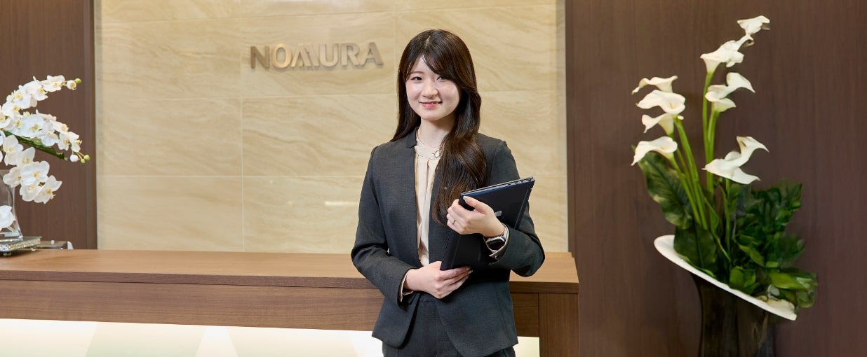 また、お客様から「じゃあ、こういうことはできる?」と聞かれたときに、自分にその取引の経験がなかったとしても野村全体で考えれば、できないことはほとんどありません。その場ですぐ対応できなくても上席やまわりの経験者に助言を得ることができます。より専門知識が必要な場合は本社の専門部署からサポートを得られるなど、聞いたら誰かが必ず答えてくれるのも野村の良さです。チームで対応しているという安心感があるから、自分は不安なくお客様へのご提案に集中できます。